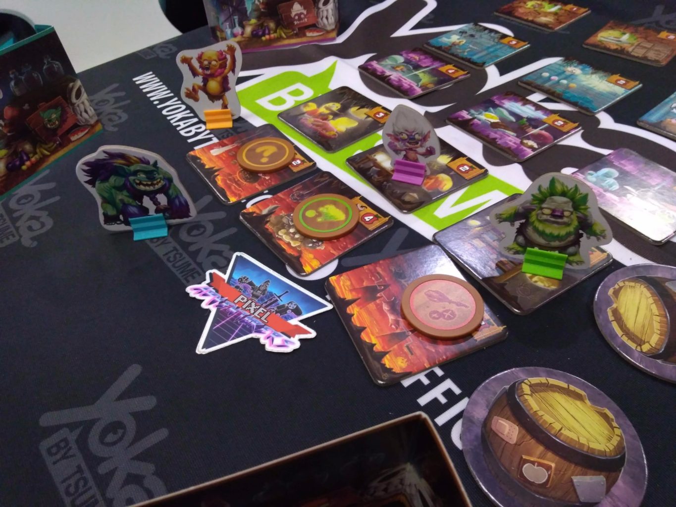 Au détour d’une allée, nous nous sommes aventurés du côté de Yoka By Tsume. L’éditeur a sorti l’année dernière un jeu de deckbuilding consacré aux Chevaliers du Zodiaque. Malgré la qualité du matériel et du jeu, nous ne retrouvions pas la puissance des attaques spéciales du manga et trouvions quelques longueurs pour atteindre la fin de partie. Yoka By Tsume a écouté les retours et critiques des joueurs! Non seulement les extensions Asgard et Poséidon, prévues respectivement prochainement et pour la fin d’année, vont apporter de nouveaux chevaliers tirés des arcs du manga mais surtout le jeu va s’étoffer. Aussi bien en coopératif qu’en campagne. Des plateaux personnels pour chaque héros vont faire entrer les attaques spéciales en jeu ! Enfin on va pouvoir faire les Météores de Pégase ! On est très content de voir ce jeu s’affiner et Yoka tenir compte de l’avis des joueurs.