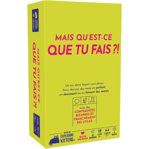 Aujourd’hui nous parlerons donc de Mais qu’est-ce que tu fais?!, premier jeu d’ambiance de la gamme que l’on a essayé.