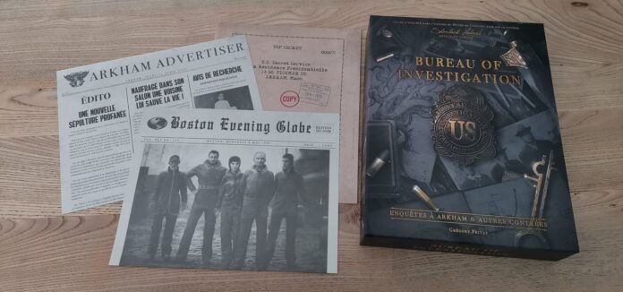 Les Space Cowboys proposent avec cette (première on l’espère) boîte de Bureau of Investigation, 5 enquêtes riches et intenses, impliquant les joueurs et demandant de mobiliser tous leurs neurones. On parcourt ainsi les différentes affaires en suivant les pistes qui nous intéressent et en parcourant les villes de Boston et d’Arkham.