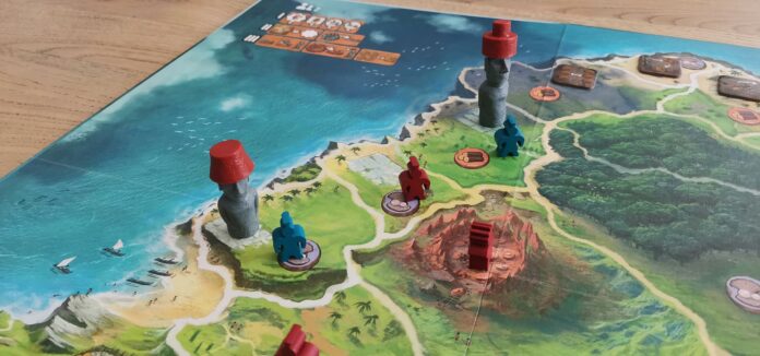 Les parties sont divisées en tours de jeu durant lesquels les joueurs vont devoir placer leurs différents meeples pour être les plus efficaces dans la production et l’acheminement des statues. Chacun leur tour, les joueurs vont donc placer un de leurs villageois sur un site de production ou une case de l’île. Selon la destination, le villageois endossera donc différentes casquettes.