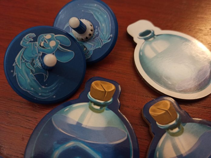 Salut les rongeurs ! Si je vous dis que des toupies et des souris peuvent avoir un point commun, vous allez sûrement me dire que j’ai un petit grain, et c’est fort probable. Mais, ce sont aussi les composants de Ghost Adventure, un jeu de société coopératif de Wlad Watine, illustré par Jules Dubost et Yann Valeani et édité par Buzzy Games. Le titre est disponible depuis le 20 octobre et, vu son originalité, pourrait conquérir le cœur des parents ludistes qui voudraient partager quelques parties avec leur progéniture.