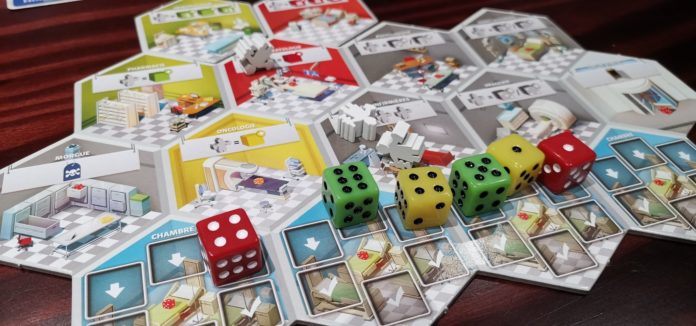 Mais si on a tendance à vouloir soigner au mieux chaque patient pour vite les faire sortir de votre hôpital et ainsi libérer de la place pour éviter le débordement #FlattenTheCurve, dans Dice Hospital, vous ferez un maximum de points si beaucoup de patients sortent en même temps. Il est donc intéressant de gérer les patients pour organiser une sortie groupée. On arrive au vrai coeur du jeu, vous devez temporiser la guérison des patients même si vous devez faire en sorte que certains dés se détériorent par l’absence de soins pour réussir à libérer le plus de lits possibles d’un coup.