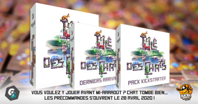 L’Île des Chats est un jeu de Franck West qui a pu exister via un financement participatif sur Kickstarter rassemblant plus de 8000 contributeurs et 460 000£. Avec ce beau succès, il était important qu’il trouve le chemin des étales francophones ! Et c’est grâce à Lucky Duck Games que nous pourrons jouer avec un titre traduit dans la langue de Molière. La version française devrait arriver bientôt et c’est à l’occasion de la précommande de cette dernière que nous vous la présentons !