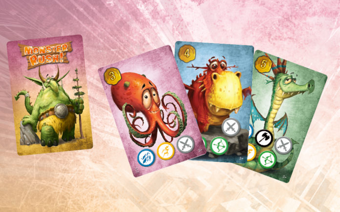 Salut les Chasseurs de primes ! Une horde monstres (bien que tout mignons) déferle sur le village, les habitants ont besoin de braves pour en venir à bout. Charmés peur leur trogne adorable, ils succombent aux créatures. Et c’est là que vous intervenez ! Monster Rush de Theo K. Mavraganis est paru en 2017 chez Artipia Games. Il est édité en français et vient de sortir cette année en tant que deuxième titre du catalogue de Funny Fox Games. Il s’adresse à un public plus jeune et familial que Ceylan, les chasseurs peuvent commencer à jouer à partir de 8 ans.