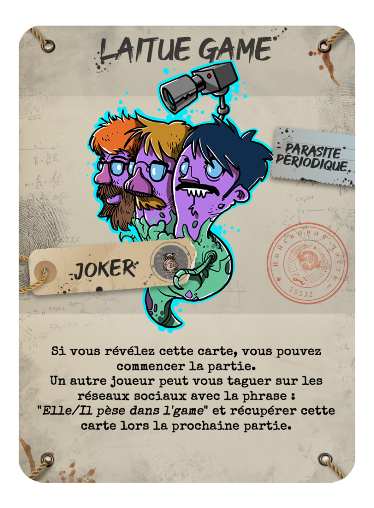 C’est sur Kickstarter que vous pourrez aider à donner vie à Parasite Games. Le jeu va diviser, Léo Blandin le sait et il assume pleinement. Cette “extension universelle” est un projet plaisir qui lui tient à cœur. Ça se sent dans l’esprit du jeu mais aussi dans les cartes qui sont là pour offrir un peu de légèreté à un monde ludique peut être trop sérieux parfois. C’est nourri de passion que le jeu vous sera livré deux mois après son financement. Parasite Game reste dans la veine des jeux de Chèvre Edition, fabriqué en France pour un bilan carbone le plus petit possible, des délais de livraison au plus court et des frais de port gratuits ! Toujours sensible aux causes environnementales et humanitaires, Parasite Game reversera 1€ à Agro Contre le Paludisme pour chaque boite achetée.