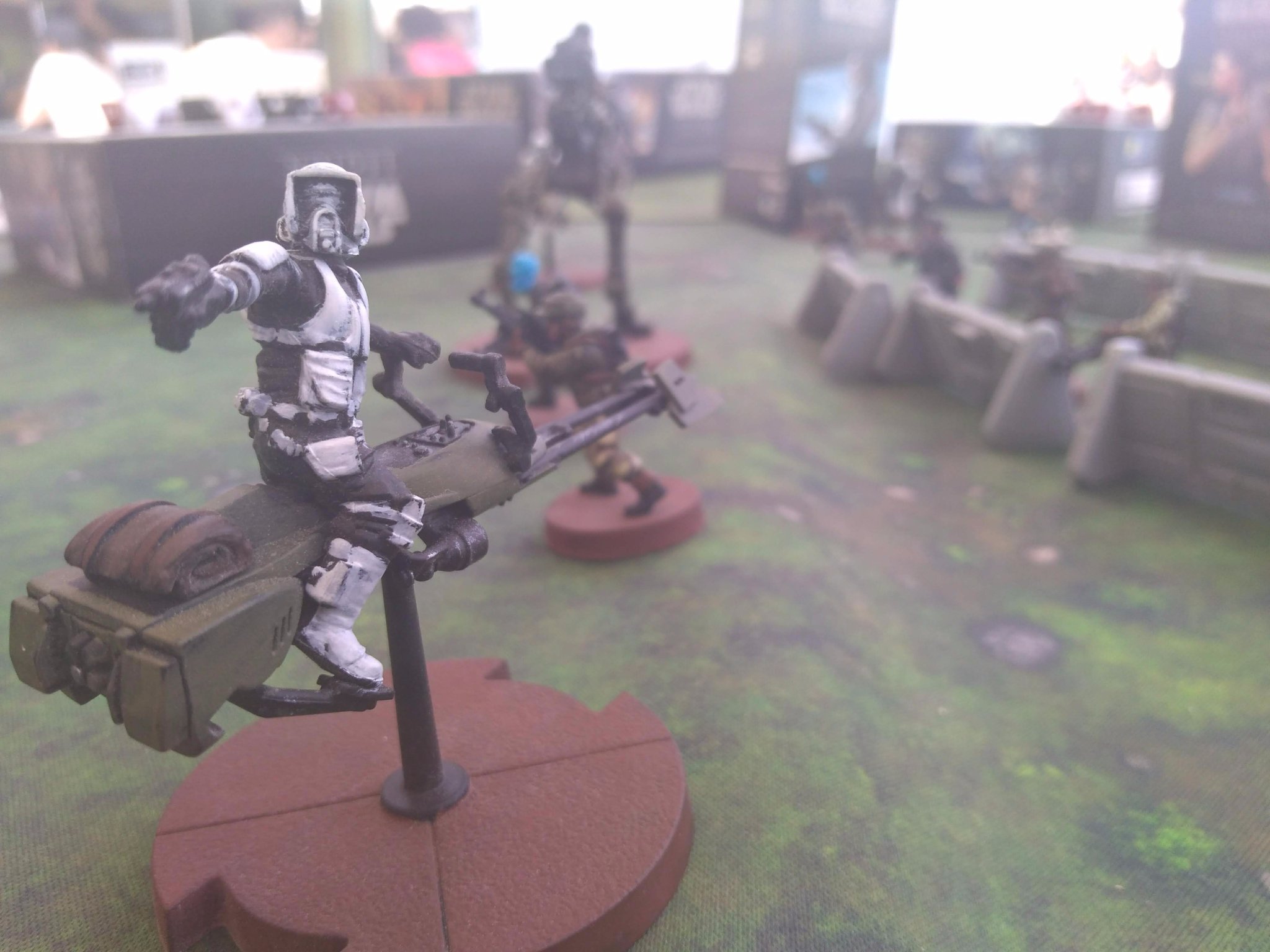 Juste à côté, comment louper l’espace Asmodee ? Énorme place tournée autour de l’éditeur/distributeur, notre regard s’est tout de suite posé sur Star Wars Legion et l’envie de repartir avec une palette complète du jeu n’a jamais été aussi forte, heureusement qu’on m’a raisonné sinon je pense que mon banquier m’appelait pour signaler une possible tentative de vol de carte bancaire… x)