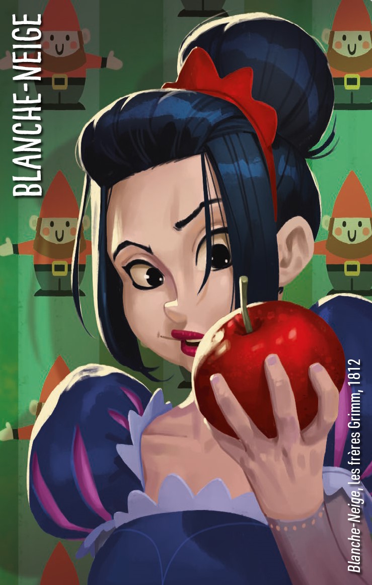 C’est Naïade (Tokaïdo) qui s’est chargé des illustrations et comme vous pouvez le voir depuis le début de cet article, le travail est remarquable. Il a réussi à faire en sorte que l’on reconnaisse des grandes figures que l’on connait plus ou moins d’un clin d’œil pour faciliter le jeu mais il a surtout réussi à se démarquer des grandes illustrations connues de tous. En particulier pour la boite Contes. Si on reconnait aisément les différents personnages par leurs caractéristiques, on est quand même assez éloignés du style Disney qui était facile à reprendre. Non seulement les illustrations sont belles mais elles sont en plus originales. Même si on doit avouer qu’on pense que Burton a un peu inspiré la Reine de Cœur.