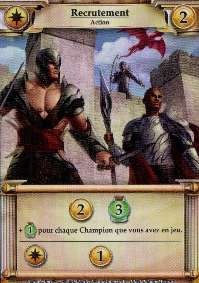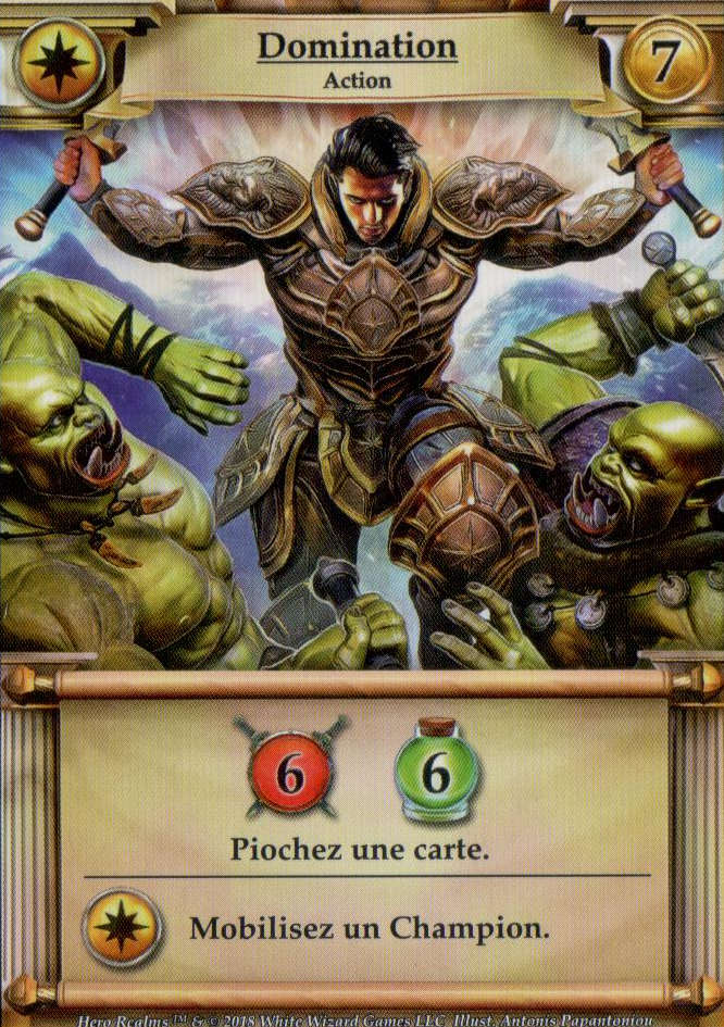L’Or permet d’acheter des actions, objets et champions qui lui apporteront or, puissance de combats et d’autres capacité (piocher une carte, faire défausser l’adversaire, se soigner, etc…)
