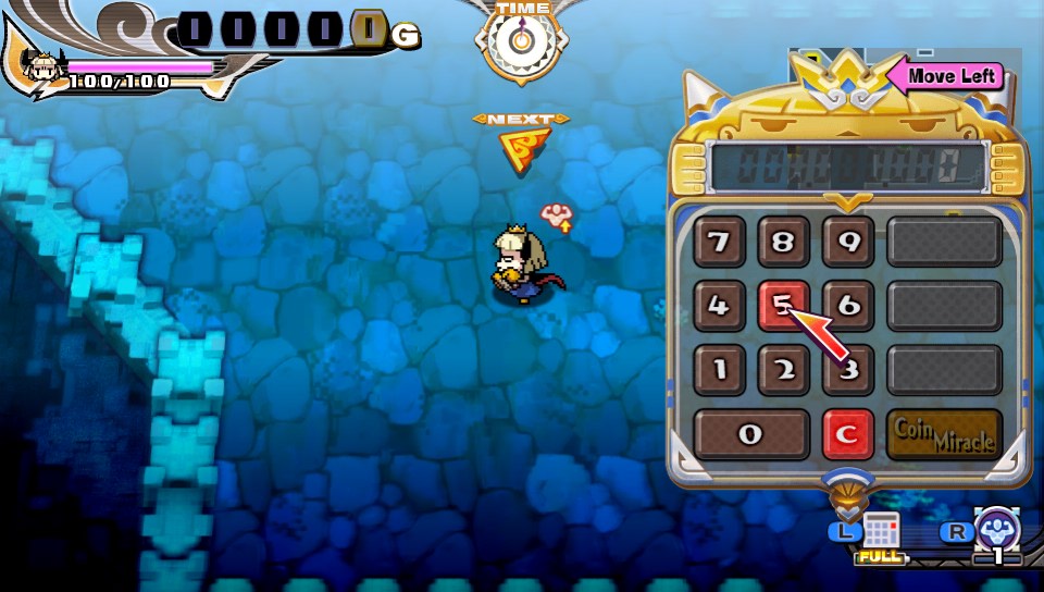 Alors il faut le dire directement Penny-Punching Princess est à l’origine un jeu PS Vita. Je pense que c’est pour cela que beaucoup de notes sur la version Switch ne sont pas super haute, en moyenne 5/10. En effet, le jeu est vraiment fait pour la portable de Sony. La calculette est placée directement au bord droit de l’écran parfaitement accessible via le pouce droit. Vu la taille de la PS Vita cela ne pose aucun souci mais sur une Switch qui fait la taille d’une tablette et le poids de la console, difficile de jouer à une main.