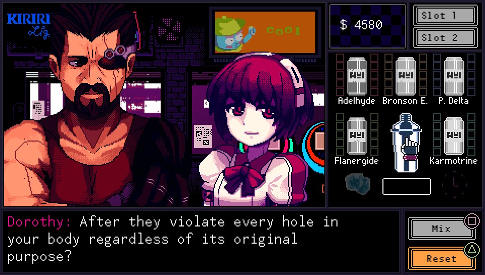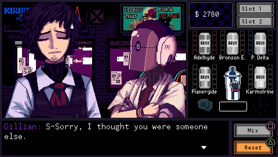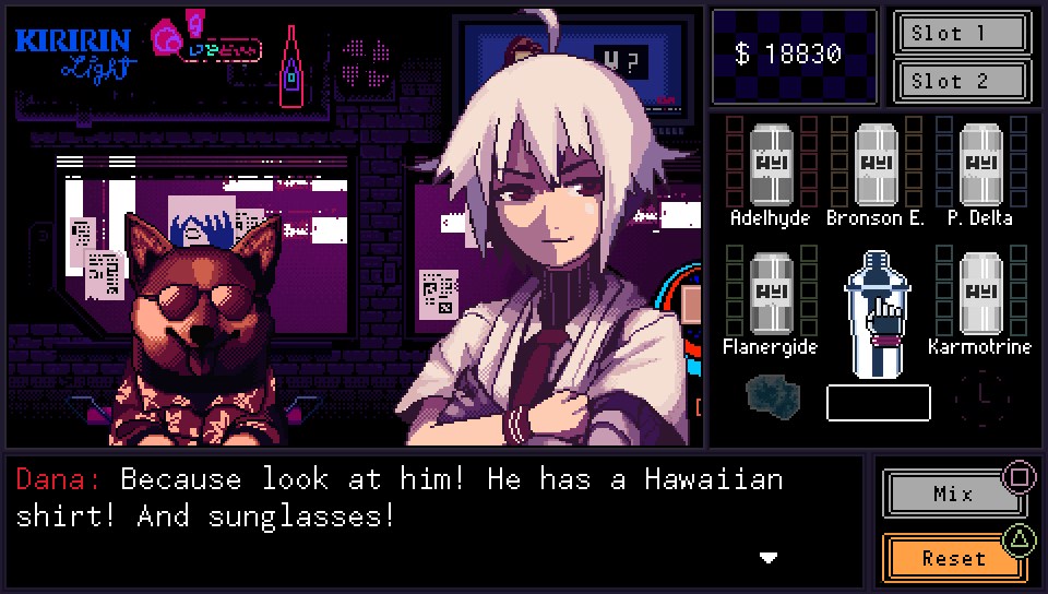 J’ai eu l’impression de retourner dans l’univers de Cowboy Bepop mais cette fois du côté du barman. L’ambiance est parfaite, tant les musiques cyberpunk et les personnages mi-humains mi-cyborgs vous transportent directement dans un cette dystopie. Au travers des boissons et des clients vous allez partager des tranches de vie avec les clients.