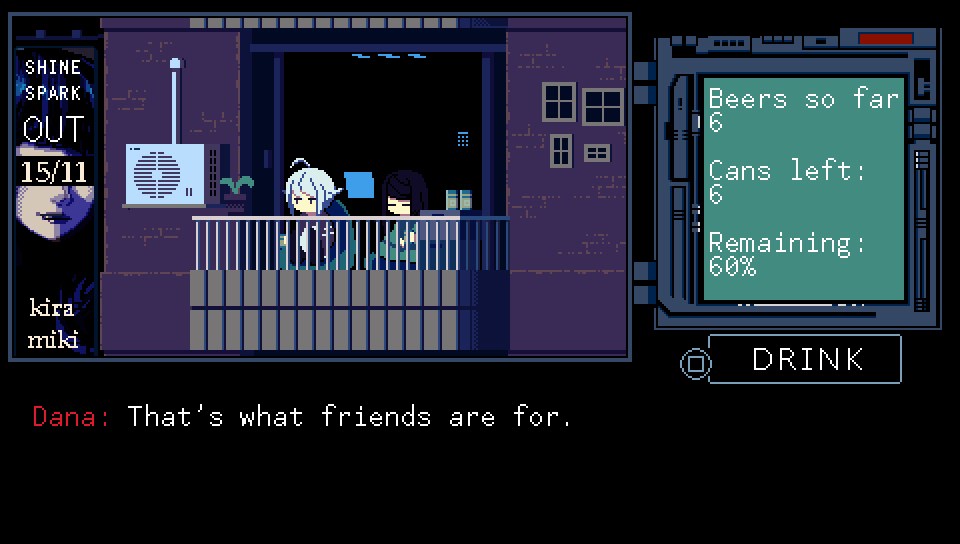 Le jeu laisse cependant un arrière-goût, tel un cocktail un peu trop acide, j’aurais voulu en savoir plus sur les personnages, sur l’univers et le futur de VA-11 HALL-A et Jill. Mais cela sera peut-être pour un prochain jeu…