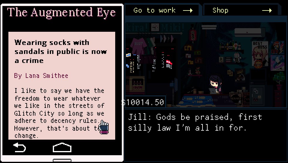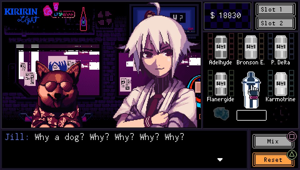 VA-11 HALL-A est surprenant et surprend en bien! Je me suis retrouvé plongé dans une histoire frappante de maturité qui vous embarque directement dans son monde. Le jeu est à la fois dur au niveau de son texte mais également très drôle. Il est saupoudré d’Easter eggs qui font toujours mouche sans être lourds.